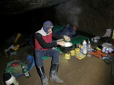 | Zdař všem účastníkům zájezdu :-) Jen na doplnění informace posledního Tomíkova příspěvku/druhého odstavce. Byl jsem v první PV skupině za Labirint při pondělním retransportu bez průvodce. Chtěl bych tady dodat, že naše bloudění bylo způsobeno i chybou naší s dalšími okolnostmi. Připravené mapy v bivacích jsou určitě určeny k používání a na cestě by nám nejspíše nějaké pasáže osvětlily. Bez ní jsme po 5 hodinách bloudění s čluny na hlavách snažíce se něco vyčíst z písku rozhodli otočit prakticky jednu zatáčku před cílem dne. Jak pak zhodnotil Franci "zase jste se podívali, kam se moc nechodí" :-)) Díky zvěři na povrchu se trochu opožďoval CaveLink a počasí nebylo úplně podložené z malého výpadku Netu na základně (nejspíše zapříčiněném nadměrným sosáním "podpůrných informací") a taaak. Prostě souhra náhod, morál skupiny co šla na noční a organizačním vedení expedice neustále prozpěvujícího si Tomíka se vše zdárně zvládlo. Povedené fotky z konce expedice neprodleně předám ať vám neutečou poslední pohledy na tábor, motání nerozmotatelného ani svoz odpadu. Zdař Bůh lidi, bylo fain |