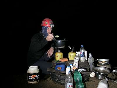 | Ahoj. No já nevím nevím, jestli se nelezlo kvůli mě, já jsem ještě běhal s Distem, když byl Pólo zpátky v bivaku krs zalomenej vrták. Nechtělo se nám do cizí vrtačky mlátit, abychom ho vyklepali. Jinak vrtačka produkuje strašně moc zplodin a hluku, vrtání jde sice stále a skoro zadarmo, ale za chvíli je člověk udušenej a ohluchlej. Taky jsme nechtěli blokovat člun pro další odsrojovače, kteří měli přijít odpoledne. Jinak samozřejmě obdivuji nosiče za neuvěřitelně statečný výkon při vynášce z Labyrintu do Saturnu... |
