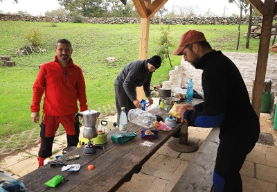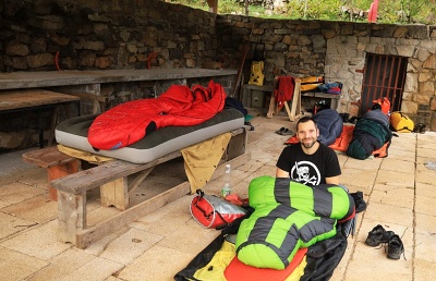 Dorazili jsme tradičně v nočních hodinách ze čtvrtka na pátek. Naštěstí nás u Divašky jamy ráno v šest začali budit pilní dělníci, kteří staví místní turistické zázemí na horní louce a na 9 dorazil Jaka.