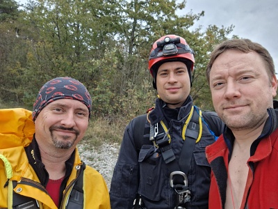 A jaké jsou další plány? O Velikonocích bychom rádi vyrazili na obdobnou akci zaměřenou na dolezení zajímavého okna v protější stěně 20m široké hlavní šachty Faustova nekonečného komína a dole pod vstupní propastí by se po propojení do Propástky u kola již začalo postupovat skrz kamennou suť s průvanem do objevů! Akce se pravděpodobně spojí s přípravnou akcí před velkou letní expedicí, na které bychom rádi vychytali počasí a poslali potápěče zdolat 4.sifon v Povirském rovu a vztyčit vlajku v Povirské dvoraně a snad i dál! V Mihevcové dvoraně za 1. sifonem bychom rádi osadili pamětní plaketu na počest největšího bojovníka za život a borce, který se o poznání Kačne jamy zasloužil nejvíc. Andrej Mihevc odešel 17.10.2024 odpočívat do jeskyňářského nebe. Čest jeho památce. Andreji, v Kačne jamě budeš vždy s námi!