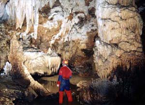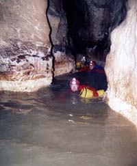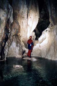 V pátek 22.8. ráno vyrážíme ke skalnaté rokli ponoru Cetatile Ponorului asi 20 minut od tábora. Dech nám vyráží monumentální vchod do jeskyně vysoký 50 m. Na řadu přicházejí opět neoprény a již se chtivě vrháme do nitra jeskyně. Jeskyně má celkem 4 vchody, které postupně míjíme pří průstupu obrovského podzemního řečiště. Zpočátku překonáváme několik vodních kaskád, ale víme, že nás čeká plavání v celkem 13ti jezerech které jsou situovány v druhé polovině jeskyně. Plavání v jezerech je opravdu vysoce výživné i při velmi nízkém vodním stavu, které panovalo v našem období. Při vyšších stavech, jak jsme zjistili, je třeba některé úseky vystrojovat lany pro překonání protiproudu. Nejkrásnější partií je povodňové patro v zadní části, kterým se překonává sifon. Nádherné krápníkové a sintrové útvary v kombinaci se zelenou hladinou jezer svádělo k vášnivému focení. Ještě vášnivější však bylo následné plavání v nejdelším jezeře (6. jezero) naplněného neuvěřitelně studenou skapovou vodou. Tady rozhodně měli výhodu ti, kteří disponovali neoprénovým oblekem i horní části těla! Za tímto patrem překonáváme další výživná jezera, větší dóm a již stojíme u finálního 14. jezera a koncového sifonu zároveň. Společné foto, pár čokoládových tyčinek a vydáváme se na cestu zpět, při které pořizujeme fotodokumentaci. Po 3,5 hodinách pobytu v jeskyni vycházíme promrzlí konečně na sluneční světlo. Odpoledne navštěvujeme turisticky ještě ledovou jeskyni Ghetarul Focul Viu. V sobotu už jen balíme a odjíždíme plni nezapomenutelných zážitků z vodních jeskyní zpět domů, kam přijíždíme v pozdních večerních hodinách. Ssebou jsme si přivezli předsevzetí "Do Rumunska se rozhodně vrátíme !". Hlášky z expedice: Při přejezdu maďarsko-rumunských hranic - Jindra: Rumunsko je opravdu v Asii? Při průstupu vodní jeskyní Sura Mare - Uli: Nemáte něco suchýho na utření ruk? Číra v Sura Mare: Mám dojem, že mi nateklo trochu vody do zásobního karbidu. Pro jistotu se na to mrknu a posvítím si karbidkou ... DETONACE ... plameny na vodě ... ožehnutý úsměv Večer v kempu na Padisi, když "U" vařil a přišel za ním kůň - "U": On mi ten obal od spacáku opravdu celej sežral! Ke konci expedice, než FanTomáš zjistil, že má asi blbě založený film - FanTomáš: To mám ale hrubě dlouhej film ve foťáku, čtyřicátá fotka a ještě můžu fotit. Bomba! Fotografie z expedice zhlédněte v sekci Fotogalerie. |