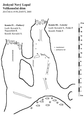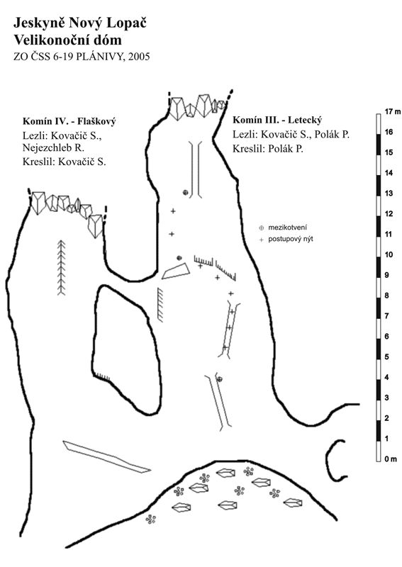 V jeskyni Nový Lopač bylo navázáno na průzkum komínů ve Velikonočním dómu, který byl započat v loňském roce na požádaní skupiny Tartaros. Z komínu III se podařilo proniknou do sousedního komínu IV, který byl nazván Flaškový. Bylo dosaženo výšky 13 m a komín byl ukončen ve zboru balvanů bez možnosti dalšího postupu.