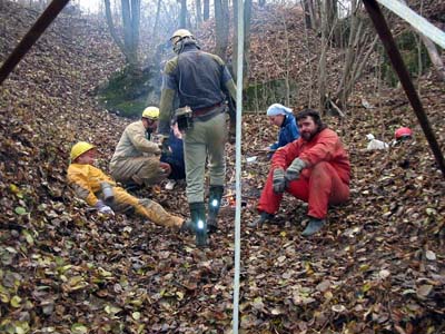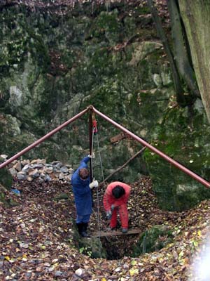 Byl jsem se podívat na dně jak kopete. Název závrtu Zelená tma sice nebyl pravý. Pravá byla slivovice ukrytá za výdřevou. Kdybyste si prohlédli mapu Ryšavého z r. 1949, zjistili by jste, že kopal pod vstupem přímo dolů ve směru logického pokračování. V mapě měl i odbočku s dómkem a propadlinou, kde je Vaše nynější sonda. Podle mě se jedná o dva souběžné jícny, větší a menší. Větší je starší, pod strání závrtu a v poslední době nefunkční. Současný vstupní je mladší korozní a zřejmě se pod něj za chvíli prokopete zespodu. Asi vznikne krásný klikyhák, ale s tím se naozaj nedá nic dělat. Každopádně je to pracoviště velmi perspektivní, které zastihne nejspíše přítok od Šošůvky (ponorů pod obcí Šošůvkou), eventuelně paleopřítok úrovně Holštejnky, tedy systém, který se kdysi pokusil otevřít Moučka z Černého závrtu. Přeji Vám hodně zdaru a úspěchu.