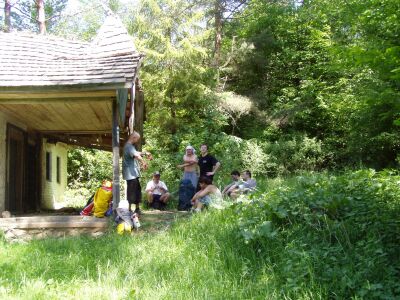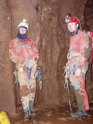 První skupina ve složení FanTomáš, Číra, Jarda a SeBo dorazila do maďarska ve čtvrtek po desáté hodině večerní. Okamžitě započala uvítací párty, která se pro některé protáhla až do pozdních nočních hodin. Ráno jsme se pak všichni sbalili a ve složení 4 maďaři a 4 češi vyrazili autem do vedlejší vesnice. Tam jsme zaparkovali auta na dvoře policejní stanice a vyrazili jsme skrz cikánskou osadu do lesa. Tam jsme začali stoupat do celkem 300 metrového převýšení, které bylo provázeno neuvěřitelným vedrem kolem 32 stupňů. Následoval trek po planině kolem vchodu do propasťovité jeskyně Meteor a dále a dále až do úplného vyčerpání. V jednom z obrovských závrtů jsme konečně stanuli u jícnu propasti Vecsembükk. Ústí vstupní propasti 3x5 metrů padalo kolmo do hloubky 80ti metrů. Jako první šel Szold, který propast ukázkově vystrojil. Zhruba v polovině propasti byl úzký průlez mezi kameny, pod nímž se otevřelo ústí další 90 metrů hluboké megašachty.