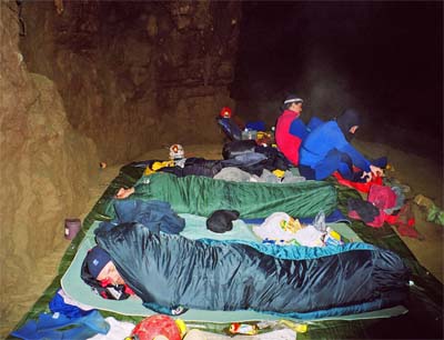 Přípravy na odchod borců do jeskyně se kapku protáhli, ale nakonec kolem druhé hodiny zalézá útočné družstvo ve složení: Bedůcí, U, Karel, Štajgr, Radek a Tomáš. Ssebou transportovali 350 m lan, další člun, vrtačku, vystrojovací materiál a část vybavení bivaku. O několik hodin později ještě vstoupil do jeskyně podpůrný tým - Míla, Hanka, Jana a jeden člen slovinského speleoklubu se zbytkem materiálu pro bivak.