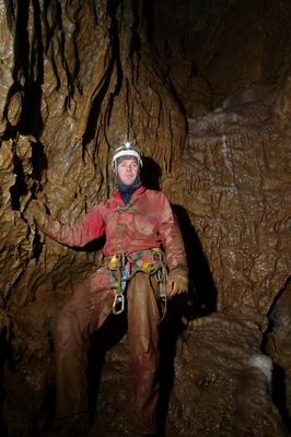Počas prvej lezeckej akcie, za pomoci lezeckého stĺpa, bol prekonaný úvodný previs a bola dosiahnutá prvá polica komína vo výške 6m. Voľným lezením bola dosiahnutá druhá polica (+10m). Tu bola nájdená zlaňovacia smyca z minulosti. Po zhodnotení možností postupu bola vybratá k lezeniu pravá časť komína. Opäť pomocou lezeckého stĺpa a technického lezenia bol dosiahnutý Pravý dómek (+23m). V jeho strope, na západnej stene bolo preskúmané okno, ktoré končilo neprielezne. Ľavá časť komína bola počas druhej akcie liezená cca 4m traverzom z pravej časti komína (+19m) po uklonenej polici ku cca 1m skalnému oknu. Za ním bola objavená priestranná polica, tvoriaca dno Levého dómku. Pomocou lezeckého stĺpu bola dosiahnutá ďalšia polička (+27m) a voľným lezením bol preskúmaný vrch komína (+36m), ktorý nevykazoval žiadne náznaky horizontu. V Pravom aj Levom dómku boli nájdené zlaňovacie smyce z minulosti. Žiadne kosti netopierov neboli pri prieskume nájdené. Pri lezení komína nebol zaznamenaný žiaden prievan. Pri tretej a poslednej akcii boli, s negatívnym výsledkom, znovu dôkladne skontrolované všetky možnosti prípadného pokračovania. Bola vyhotovená fotografická a mapová (Disto X) dokumentácia komína.