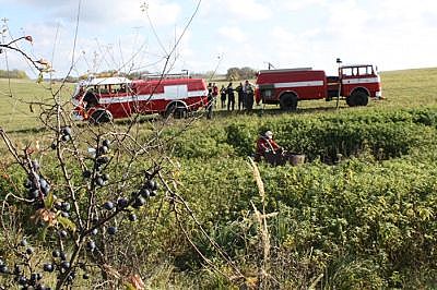 Na Slepičárně jsme naložili do auta cca čtyřicet metrů hadic, lano ke slanění vstupní šachty, osobní věci a odjeli k závrtu. Tam jsme hadice spojili dohromady. Já jsem slanil do závrtu, Jarda celou akci jistil z vrchu a hadice začal pouštět dolů. Já je dole pomalu natahoval až na dno závrtu. Celá příprava trvala asi hodinku a půl a začerpávák byl připraven ke spuštění. Pak jsme odjeli zahájit víkend malým večírkem v naší oblíbené hospodě u Pepka v Holštejně. Večírek byl zárovneň pojat jako oslava Čírových narozenin. V sobotu ráno dorazil zbytek skupiny. Rozdělili jsme se na dvě části. Jedna se vydala do jeskyně. Měla za úkol pozorovat vodopád ze stropu dómu v Amatérce. O tom dál bude psát FanTomáš. Já měl na starosti skupinu, která měla za úkol provést začerpávácí pokus. Jelikož vše bylo připraveno z pátku, nebylo nás potřeba moc. Přidal se pan Bukáš a Pavel Kalenda. Hasiči dorazili na přesně domluvený čas, o půl jedenácté. Spolu s panem Bukášem jsme slanili do závrtu a zaujali svoje pozice. Já dole, pan Bukáš uprostřed, tak abychom se navzájem „dořvali“ na povrch, kde byl Pavel. Přesně v jedenáct se celá akce spustila. Hasiči nahodili čerpadla a do závrtu začala téct voda. Celkem sedm tisíc litrů, ze dvou cisteren. Na dně závrtu jsem pozoroval vodu tekoucí do podzemí. Čekal jsem, že se dno, o rozměrech asi metr na metr bude postupně zaplavovat a voda stoupat. Ale opak byl pravdou. Voda protekla uplně hladce. Dvakrát deset minut a voda z obou cisteren zmizela někde v Amatérce. No a bylo po akci. Už zbývalo jen vytáhnout hadice na povrch a všechno po sobě uklidit. A to už nemá cenu rozsáhle popisovat.