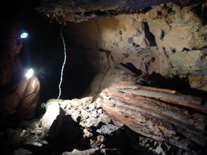 | Celá jeskyně bude do čerpáku přestrojená. Už to skoro je. Ty staré žebříky jsme pomáhali řezat a transportovat nahoru. |