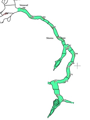 Nepříliš prokazatelné barvení Plániv v osmdesátých letech ukazovalo, že tok Plániv ústí do Fousatého sifonu a situace v tektonice naznačuje, že právě v této oblasti by možné propojení mohlo existovat. Barvící pokus v letošním roce byl prozatím neúspěšný, ale o tom jinde. Po objevení jeskyně Matalova Vymodlená se objevilo další okénko, které by do tohoto spojení mohlo promlouvat. Situaci schematicky znázorňuje obrázek se vzdušnými (byť pod zemí) vzdálenostmi. V jeskyni Spirálka jsme tedy v letošním roce otevřeli celkem tři nadějná místa. Téměř na aktivním toku Bílé Vody jsme se hydrotěžbou zakousli ve Vensavači do zasedimentované blátivé chodby s názvem Sliznice. Již sám název napovídá, jak to asi na místě samém vypadá, až dosud bylo přístupné jen odvážným, kteří neváhali do svých overalů nasát co největší množství bahna. V letošním roce jsme zatím postoupili asi o 15 metrů, a prozatím tedy nepřekonali místa, kam se dalo při dostatečném morálu bahnem proplazit. Ale těžba jde dobře, takže doufáme v brzké překonání koncových bodů. Jediným limitujícím faktorem je výše vody, která při zvýšeném stavu může zaplavit ústí a znemožnit tak přístup k této lokalitě. Letos tomu tak bylo na počátku roku a pak jen chvíli na počátku léta. Jinak se do zeleného ocásku na mapě zakusujeme trvale.