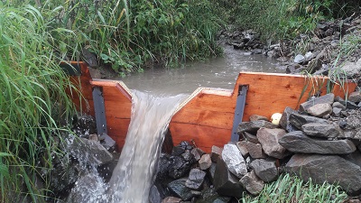 Na snímku měrného přelivu v Šošůvce je zachycen prozatím největší zaznamenaný průtok – 17 vteřinových litrů. Jinak jsou průtoky podstatně nižší a můžeme říci, že dva měrné přelivy měří jen výjimečně, protože běžně je tu spíše sucho – jde o Loučky a Plánivy II. Velmi řídké je i měření na profilu v Domínce, a občas se podaří vyschnout i potůčku na Plánivách I.