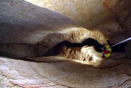 Následující studny s názvem Propast hrůzy a ještě větší hrůzy (P80) v nás vzbuzují respekt, zvláště když nám kolem hlavy prosviští pár kamenů, ale to už se ocitáme na starém dně v hloubce 603 m. Zde trochu brousíme se snahou najít další pokračování ve zborech na členitém dně, ale hlavním naším úkolem je připravit cestu druhé skupině do partií Helloween, kde hodláme pokračovat v průzkumu spodních partií jeskyně. Vystrojujeme ještě menší studnu Herkulovy lázně (P30) a obracíme se k výstupu. V Propasti ještě větší hrůzy nás dohání druhá skupina, ve složení Milan, Beny a Standa, která se pokusí v Helloweenu proniknout do okna položeného v jednom z komínů. Vzhledem k vydatnému vodopádu vytékajícího z komína je průzkum okna znemožněn. V celých spodních partiích vydatně "prší" a žádné další nadějné místo vhodné k průzkumu se nedaří najít, druhá skupina odstrojuje propast až do I. campu. Středa je naším odpočinkovým dnem, brousíme po okolních kopcích, zásobujeme "garáž" vodou, fotíme, jíme a odpočíváme. Ve čtvrtek první skupina provádí fotografickou dokumentaci a odstrojuje propast až k traverzu nad Šumem svistu.
