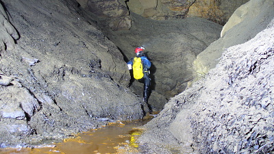 Během soboty vyrazili dále za Ogabno jezero dva lezecké týmy ve složení Luboš a Ondra a dále Plzeňský tým ve složení Tomáš a Michal. První jmenované družstvo mělo za cíl dolezení do horní galerie a opravdu se jim to taky povedlo. Objevili celkem 70 m horních pater ukončených hlinitou ucpávkou. Plzeňské družstvo rozlezlo druhý komín na Rece do výšky cca 10 m. Franciho mapovací tým ve složení Ivča, Zdenka a Franci mezitím přeměřili chodby zvané Pod dobrou vodou. Společně jsme se pak potkali v biváčku v Peščeni dvoraně a řádně jsme oslavili úspěchy. V neděli dopoledne se špatně vstávalo, ale bylo nutné jít pro zbytek materiálu k druhému sifonu. Takže jsme se v Saturnu znovu osprchovali a vše vynesli za dvě hodiny do bivaku. Mezitím Plzeňáci ve složení Jirka, Tomáš a Michal vyrazili do Plzeňského rovu a provedli poslední revizní ponor v horním sifonu vlevo před závalem. Bylo konstatováno, že jde pod skalní kulisou plavat dál dolů podél závalu, nicméně jen do hloubky 10 m, kde se profil uzavírá. Následovalo pobalení materiálu u sifonu i vzadu v bivaku a odnos veškerého materiálu pod vstupní propast, odkud již jel nahoru vrátkem. Nahoře přijeli pomoct Bára, Zuzka, Nikola Tesla Šuhaj Loupežník a Fousi. Těsně před opuštěním jeskyně se nám podařilo najít v horní poloze suťového kužele na dně propasti jakousi zapomenutou odbočku, která směřuje 20 m zajímavým severním směrem, k aktivnímu odtoku reky Reka za Bukovnik. Uvidíme, co se podaří rozobjevovat dál. Pravdou je, že se zde nacházíme cca 100 m nad aktivem Reky, takže budeme potřebovat hodně štěstí, aby se nám na současném zahliněném konci s trativodem podařilo najít pokračování horního patra s následnou propastí dolů. Ale jak nás tak znám, tak jsme haluzáři a určitě se nám to podaří. Závěr: Na podzimní akci byla téměř dokončena mapová dokumentace objevených prostor za sifony v Hojkerjevě dovraně. Dohromady cca 500 m. Spolu s dalšími dílčími postupy v různých částech jeskyně jsme do polygonu Kačne jamy přidali nových 600 m!! Hranice 17 km se blíží!!!! Fotodokumentaci dělali: Honza Enčev, Jindra Dvořáček, Štěpán Mátl, Ondra a další Poděkování za účast patří všem kamarádům, členům expedice z ČR i Maďarska. Zúčastnili se: Tomáš Roth, Štěpán Mátl, Bára Appelová, Jan Pavka, Jirka Štěpánek, Tomáš Prokeš, Jindřich Pernica, Ivana Kosíková, Michal Novotný, Zuzana Minaříková, Honza Enčev, Radek Nejezchleb, František Musil, Ondra, Lászlo Egri, Erik, Abel, Fuzi, Lubomír Chlup, Marika Čtvrtníčková, Zdeňka Pavková, Jindra Dvořáček, Nikola Tesla šuhaj loupežník a Fousi. Za materiální podporu na expedici patří naše poděkování Ludvíku Čečatkovi z firmy - Alpin Bupex - http://www.alpinbupex.cz/, který na transport materiálu zapůjčil transportní vaky! Díky |