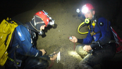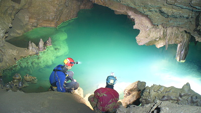 V pátek jsme vystrojili vstupní propast, osadili vrátek a natransportovali potápěčský materiál k třetímu sifonu do Spodniho rovu. Jak tomu tak bývá, hned ze začátku jsme překopali harmonogram, abychom díky zpoždění nehrotili objevy přes noc. Změněný plán nám jen mírně kazil hodně zvýšený skap v Logaškem rovu a hlavně čúrky vody v první propasti Saturnu, odkud jsme vylezli všichni řádně mokří. Lezecké družstvo maďarů vyrazilo na odpolední šichtu do částí za Ogabným jezerem, kde bylo v plánu lezení do horní galerie. Během páteční noci se Lac se svým týmem vrátili s dobrou zprávou, že se jim po polici podařilo přetraverzovat hlavní část dómu ke galerii. V sobotu ráno vyrazili za 30 m dlouhý třetí sifon do chodby zvané Jedovka, Jindra, Bradek a Honza. V plánu měli změření koncentrace CO2 a případný výlet s dýchacími přístroji, kam až to půjde. V chodbě bylo 6% CO2, což je již smrtelná koncentrace. Borci vyrazili na průzkum s odlehčenými kompozitními flaškami a po cca 70ti metrech dorazili k druhému sifonu.
