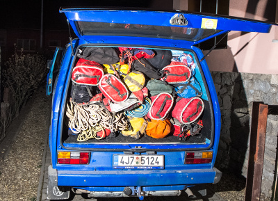 Původní termín expedice byl stanoven na únor, ale v něm bylo Slovinsko postiženo vydatnými srážkami, které způsobily povodně nejen na Rece ( 2 x 250m3/s) , ale také bylo brutální zimní vychřicí s námrazou postiženo území kolem Postojné, kde byly katastofálně zasaženy všechny lesní porosty a strženo až 200 km vedení vysokého napětí, čímž se dostala tato oblast údajně zpět o 70 let. Na akci bylo přihlášeno až 25 lidí, ale díky četným zraněním a pracovním povinnostem nakonec odjelo na akci 7 čechů a 8 maďarů. Náš tým pak ve Slovinsku částečně podpořil kamarád Mitja z místního spřáteleného klubu Gregora Žiberny. Odjezd byl ve čtvtek večer.