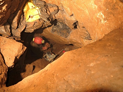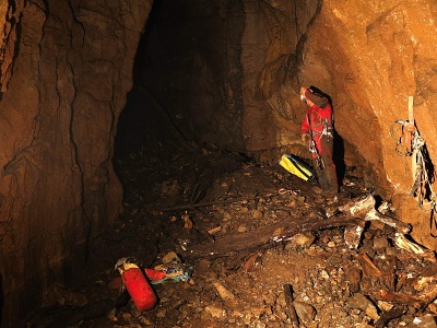 Do Slovinska jsme přijeli ve dvou vlnách. Větší polovina výpravy dorazila během středeční noci. Zbytek ve čtvrtek. Všechny tři lokality jsme začali řešit najednou. Sebo a Modor šli vystrojit Kačnu jamu a odstrojit komín v nejvyšších částech Východní chodby, kde byla šance na propojením s Dómem Jiřího Macků. Dále zamířili Sebo a Jéňa do Hojkerjevy dvorany, kde provedli rozšíření koncové úžiny s průvanem. Bohužel zde kromě cca 30 m chodeb v závalu nenašli další perspektivní pokračování. Část maďarského týmu šla do Spodneho rovu dokončit práci v odbočce nad hlinitým svahem, kde se, po Jéňově kosmetické úpravě břitu v přístupové plazivce, dařilo efektivně pokračovat v kopání. Tentokrát bylo snažení maďarů korunováno úspěšným průnikem do cca 25 m dlouhého pokračování chodby. Bohužel pokračování bylo v zadních partiích uzavřené vodní hladinou. Vzhledem ke skutečnosti, že ve vstupních partiích při prvním mapování zastihnul Franciho tým průvan, je možné, že sifonek občas vysychá. Proto je nutné toto místo ještě časem prověřit zejména za suchých stavů. Do Vítkova dihalniku jsme se vydali já, Franci a Robert s Etelkou z maďarského týmu. Vrhnuli jsme se na poslední pracoviště pod spodní stanicí lanovky. Vzhledem k nízkému počtu lidí jsme zvolili taktiku zaskládávání spodních neperspektivních partií, které se jevily jako méně stabilní. Metodou rozšiřování pomocí mikropatronek jsme se zakusovali stále níž a níž ve směru nadějného průvanu.