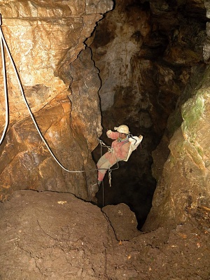 Maďarský tým pod vedením Laszla mezitím bravurně a zároveň krásně sportovně vystrojil cestu na dno propasti Podjunška jama.