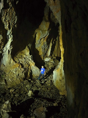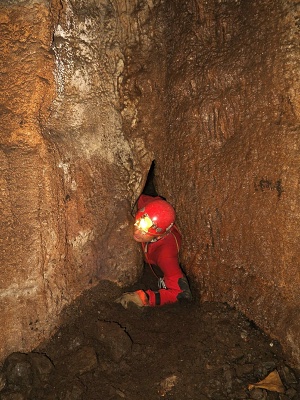 Přirozeným odtokem ze dna vstupní šachty je drobný průlez do vysokého bočního dómku, do něhož proudí znatelný chladný průvan.
