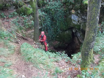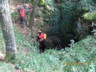 V neděli bylo dopoledne věnováno povrchovému průzkumu v oblasti mezi vesnicemi Žirje a Merče. Bylo lokalizováno spousta závrtů, o kterých jsme neměli tušení, protože jsou dost zarostlé a z ortofotek jdou špatně rozpoznat. Vrcholem průzkumu bylo nalezení vchodu do neregistrované 30 m hluboké propasti. Její přítomnost na vrcholu zalesněné planiny nás dost překvapila a z informací od Jaky Jakovčiče víme, že v místním terénu lze najít ještě spoustu překvapení. Tato propast byla bohužel na dně zasypána sutí s hlínou. Průvan nebyl, možná i díky nevhodným klimatickým podmínkám, zastižen.
