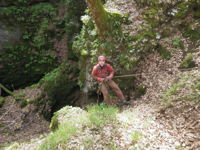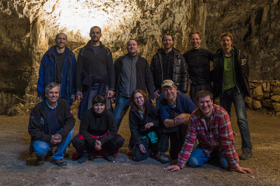Na této akci bylo vytěženo cca 2 kubíky hlíny. Prokopáno bylo cca 2 m chodby a objevili se 3 m volných prostor. Mapa spodních prostor odhalila další zajímavé souvislosti. A to že se vedle kopané odtokové chodby nachází podezřele blízko nejzazší viditelné místo paralelního úzkého meandru (měřeno laserem Dista X). Na této akci byl pozorován dokonce i průvan, který z směřoval ven z meandru. Obě nejzazší místa jsou na stejné výškové úrovni a cca 2 až 2,5 m horizontálně od sebe. Z této informace lze usuzovat, že se možná brzy obě dvě chodby potkají a s pojí v hledané pokračování. Nezbývá než si počkat na letní expedici! Ta proběhne v termínu 4.-12.7.2015. V neděli večer proběhla společná kalba s Jako Jakovčičem a německými kolegy v Orient Express baru. Na velikonoční ponděli jsme s Jakem domluvili exkurzi do Jamy Vilenica, kterážto je jednou z nejstarších turisticky přístupných jeskyní Evropy. První dochované zmínky jsou z roku 1633. Jeskyně je opravdu nádherně vyzdobená a sahá až do hloubky -190 m.