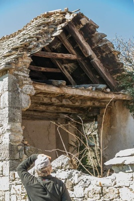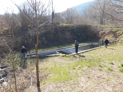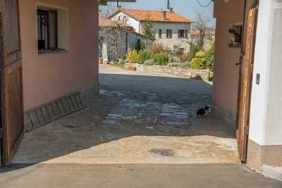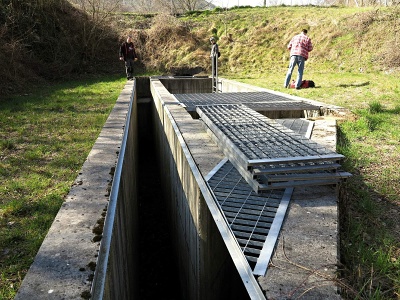 Zajímavý byl zejména řez historickou kamennou střechou. A dále jsem klukům ukázal, jak v současné době vypadá Križmanov dihalnik (na dvoře hned vedle levého rohu domu), který za povodní fouká i přes masivní kamennou dlažbu do betonu.
