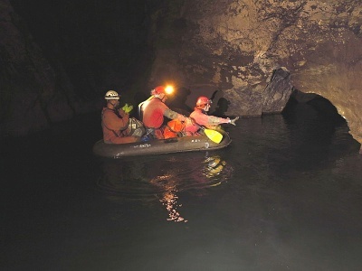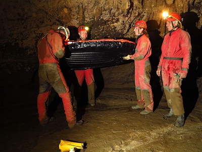 Ve středu ráno se vydali do jeskyně naši Plzeňáci s úkolem vystrojit Saturn, přetáhnout čluny na Reku a vystrojit část aktivu Reky lanem.