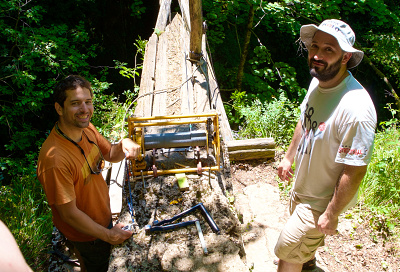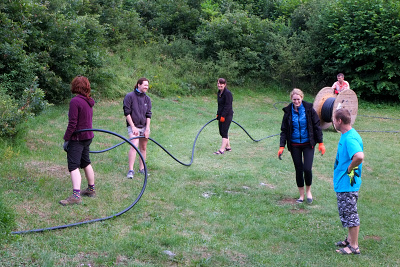 FanTomáš, Kocour, Jéňa a Zdenička šli instalovat povrchové stanice Cavelinku. Nejdříve byla natažena anténa přímo v kempu u Divašky jamy. O další kilometr dál, prakticky od okraje Vstupní propasti Kačné jamy až po most přes železnici, byla nainstalována druhá přeposílací stanice. Přímo pod námi byla maďarským družstvem nainstalována anténa v Peščeni dvoraně. Cavelink byl zapojen a odzkoušen. Drát antény byl vyvěšen na větve stromů, aby jej nepotrhala divá zvěř a elektrody byly zality každá 5ti litry vody. Test antény dopadl na výbornou. Cavelink byl od této chvíle schopen přeposílat zprávy přímo z jeskyně do kempu, což je cenově výhodná varianta. Jediný problém je v rychlosti odpovědí, protože pokud někdo nespí přímo v blízkosti stanice, tak je noční sms nalezena až ráno a naopak ráno zmožení jeskyníci vyspávají a to komplikuje předávání informací. Pokud o nic nejde, je to jedno. V případě potřeby posílání zpráv za Reku do Labirintu či Cimermana, je výhodnější použít GSM modul.