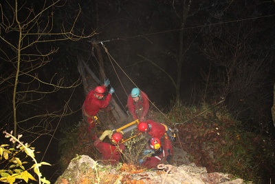 V sobotu ráno sice zazněla opět píseň vstávejte lenoši, ale moc se vstávat nechtělo. Pobalení bivaku pro deset lidí není jen tak, zejména, když si občas někdo donese 10 cm vysokou matračku a samovar. Brali jsme to sportovně a pro ostatní to bylo alespoň poučení, co sebou netahat na ostrou expedici. Jako první vyrazil pod vstupní propast Franci a donesl odtud zprávy o intenzivním slejváku. Mezitím šli Kocour, Dáša a hlavně Pavel odstrojit Saturn. Pavel ve Spodnim rovu žádnou vodu nezaznamenal. Vzhledem k tomu, že jsme následně opouštěli stření patra a víceméně jsme šplhali jen nahoru, tak nás až tak netrápilo možné zatápění spodního patra. Co nás trápilo bylo vylízání do hustého deště. Já jsem ještě s holkama na zpáteční cestě stačil zmapovat poslední chybějící odbočky z hlavní chodby a pak už se šlo nahoru. Ti rychlejší nahoře mezitím statečně v dešti vytahovali vrátkem věci ze dna vstupní propasti. Jako poslední opouštěl jeskyni Kocour, který odstrojoval propast. Ve večerních hodinách přestalo pršet. Než vylezli poslední, stačili jsme ještě odmontovat vrátek a pokecat s Kristjanem, informace byly takové, že ve 20.00 voda ve Škocjanu stále stoupá. Následně jsme se dozvěděli, že o chvíli později na 115 kubíkách kulminovala. Neznalí místních poměrů jsme šli na pizzu