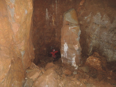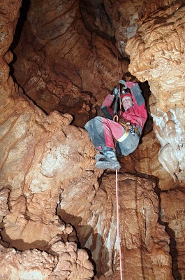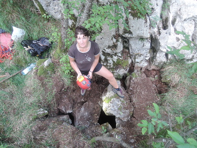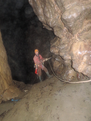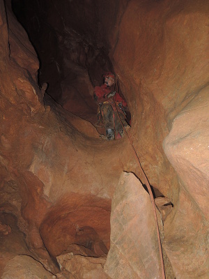 Na povrchu se odpoledne vydali Radim, Jirka Štěpánek, Martin Hejna a já do jeskyně Veliká Šprinčnica. Cílem bylo nalezení cesty do spodních propastí, kde je málo známé nejhlubší místo jeskyně. Jak se ukázalo, odbočka se nachází blízko konce lana v hlavní propasti, v boční kapse dómu.