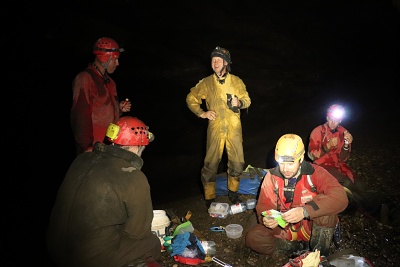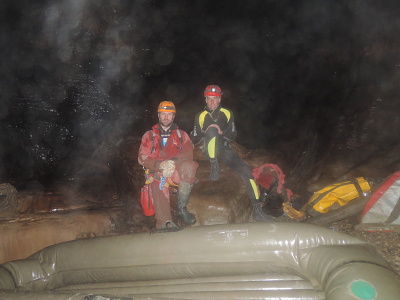 V pátek zalezlo maďarské družstvo do Kačmy s cílem čištění Lojzova podoru a pořizování 3D mapy Labirintu. Cesta Lojzovým podorem byla ucpaná a nebyl zde cítit žádný průvan, tudy se tedy do objevů nedostaneme. Český tým se rozdělil. Kocour a Radim šli vystrojovat lanovky pod Ponvicí, což výrazně přispělo ke komfortu transportu materiálu na příkrých sintrových svazích. Zbytek šel do Hojkerjevy dvorany sbírat odpadky a zkusit štěstí při tesání do hlinitých sintrů v pravostranném přítoku u Hojkerjevky. Bohužel se jeví, že tudy cesta asi nepovede. Snad by šlo zkusit ještě zdejší hlavní přístupovou puklinu se silným skapem. Jiná cesta asi do objevů nebude. Následoval transport pytlů s odpadem nahoru do Peščeny dvorany. Maďarské družstvo při návratu odstrojilo Reku a zaparkovali čluny v přístavišti ve Spodnim rovu. Instrukce zněli jasně, vrátit se před 22. hodinou před Reku, protože v noci měla přijít silná bouřka. A ta taky opravdu přišla. Spadlo docela dost vody, ale díky Cavelinku jsme věděli, že jsou všichni zpět v bivaku a vysoko nad vodou. Dle limnigrafu teklo chvíli až 25 m3/s, ale nejspíš příliš krátce na to, aby se zvedla hladina ve spodním patru až ke stropu, což údajně dělá od průtoku 20 m3/s. V sobotu ráno našli čumáčci v přístavištiu před Rekou naštěstí všechny čluny, protože voda nastoupala na Rece jen tak, že se v přístavišti zvedla hladina max o 2 m. Vše se sbalilo a začalo tahat ven. Na povrchu se vrátkovalo jak o život a v táboře krutě umývalo a uklízelo.