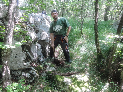 Na úterý jsme si naplánovali už jen pohodovější průzkum Logaškeho rovu poblíž bivaku, kde jsme prolezli nadějné kouty, které jsou do značné míry zaneseny hlínou. Nejzajímavější směr je od Saturnu směrem na západ, kde nejsou známy žádné chodby. Je tu jedna strmě stoupající chodba, do které se již revizně lezlo, nicméně bez pozitivního výsledku. České družstvo pak vyrazilo směr povrch. Maďarské družstvo zůstalo pořizovat snímky pro 3D mapu jeskyně. Večer jsme se v kempu potkali s Radimem, Helčou, Pepou a dětmi, kteří za námi dorazili. Ve středu byl v plánu resťák a tak jsme ráno ve složení Pavel Kalenda, Pavel Kubálek a já zajeli do jednoho závrtu s megadihalnikem vytipovaným v zimě termokamerou.