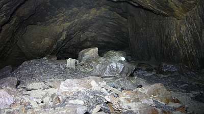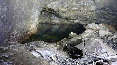 ocitnul v mohutné, nicméně jen cca 100m dlouhé chodbě, která končila dalším sifonem.
