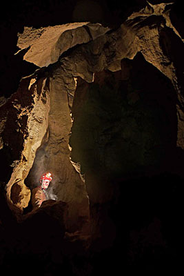 V jeskyni Spirálka vedou naše aktivity k průzkumu odtokového sifonu směrem na jeskyni 13C, který se v roce 2003 podařilo vyčerpat pouze částečně. Pokud dovolí nízké vodní stavy, pokusíme se i o čerpání Belgického sifonu (směrem na jeskyni Novou Rasovnu), za nímž na nás čeká mnoho neprobádaných a nezmapovaných prostor. Z dalších činností provádíme výkopové práce v závrtu Zelená tma a také prolongační práce nad Kyvadlem v jeskyni Piková dáma. Připravujeme podklady o jeskyni 13C, které by měly být vydány v souhrnné publikaci o této lokalitě. V současné době zde provádíme poslední mapovací a fotodokumentační práce stejně jako i průzkum posledních komínů. |