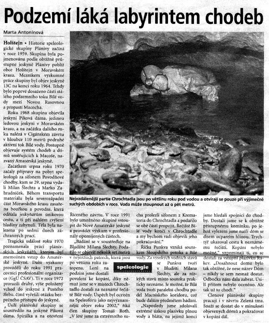 | Díky velmi nízkým stavům podzemních toků se podařilo v Nové Amatérské jeskyni propojit partie Krematorium a Chrochtadlo vázané na aktivní tok Bílé vody. Další podrobnosti o tomto významném objevu se dočtete v sekci Aktivity. |