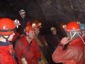 V jeskyni Spirálka vedou naše aktivity k průzkumu odtokového sifonu směrem na jeskyni 13C, který se v roce 2003 podařilo vyčerpat pouze částečně. Pokud dovolí nízké vodní stavy, pokusíme se i o čerpání Belgického sifonu (směrem na jeskyni Novou Rasovnu), za nímž na nás čeká mnoho neprobádaných a nezmapovaných prostor. Z dalších činností provádíme výkopové práce v závrtu Zelená tma a také prolongační práce nad Kyvadlem v jeskyni Piková dáma. Připravujeme podklady o jeskyni 13C, které by měly být vydány v souhrnné publikaci o této lokalitě. V současné době zde provádíme poslední mapovací a fotodokumentační práce stejně jako i průzkum posledních komínů. |
