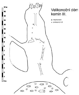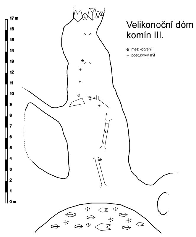Na požádání skupiny Tartaros jsme začali s lezením komínů ve Velikonočním dómu v rámci kompletizace dokumentace Nového Lopače. Akce probíhala souběžně s více než týdením čerpacím pokusem koncového sifonu, který se nakonec nepodařil dotáhnout do konce. Zdolání komína je shrnuto v následujícím výňatku z exkurzní zprávy.