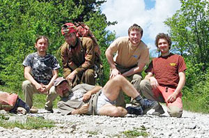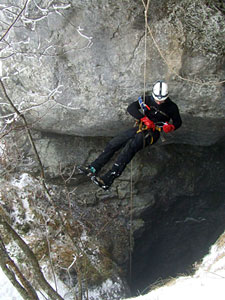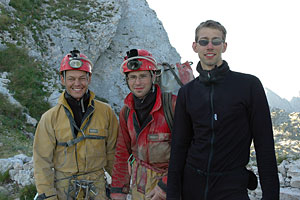 Z Brna nás tentokrát vyjelo pět: Tomáš Roth, Libor Havlíček, Pavel Kořán, Franci Musil a Tomáš Gavlas. Cíl byl jasný. Dokumentace doposud objevených prostor a další bádání v jejich koncových partiích s možností proniknutí dále do neznáma. Materiál se naštěstí vešel do Liborova kombíku a tak jsme pěkně pospolu dorazili ve čtvrtek po půlnoci do Divače. Venku byla celkem zima a tak jsme využili možnosti přespat u kamarádů v klubu Gregora Žiberny. Ráno jsme celkem rychle nabalili všechny věci a kolem desáté začali vystrojovat vstupní šachtu.