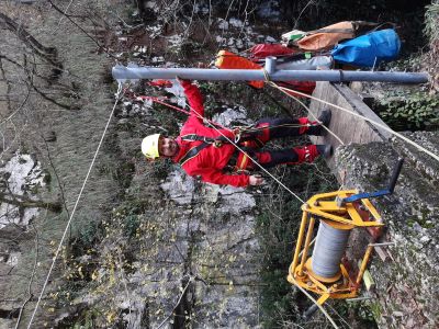 Cílem velikonoční akce byla příprava Kačne jamy na velkou letní expedici, kdy půjdou tři potápěči objevovat nové prostory za 4. sifon Povirského rovu. Abychom si ulehčili start hlavní akce, jeli jsme udělat nezbytné transporty uložitelného materiálu a značení transportní trasy. Díky povodni na Rece jsme však nemohli sestoupit do Spodního patra, a tak jsme si třídenní bivakování zpestřili lezením komínů.